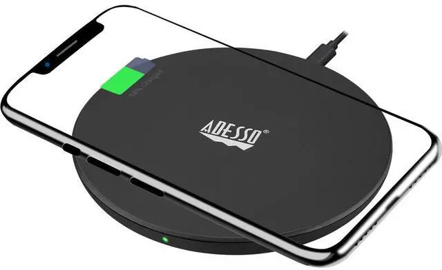 The Adesso AUH-1010 disc-style wireless Qi charger is the perfect charging companion for those who travel for business or fun. Simply place your Qi-Compatible device on the pad and begin charging. Its compact size is perfect for on-the-go charging needs. The rubber pad ensures your devices stay put while charging. The charger comes with a USB Type-C to USB Type A cable, allowing users to plug into any powered USB port.