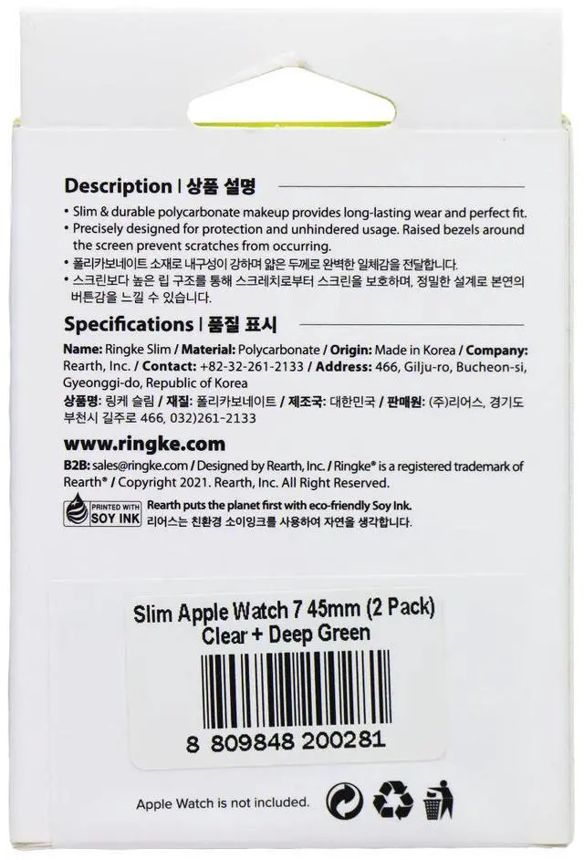 The Ringke Slim Case for Apple Watch 7 (45mm) Smartwatches. Deep Green and Clear Versions. 2 Pack.