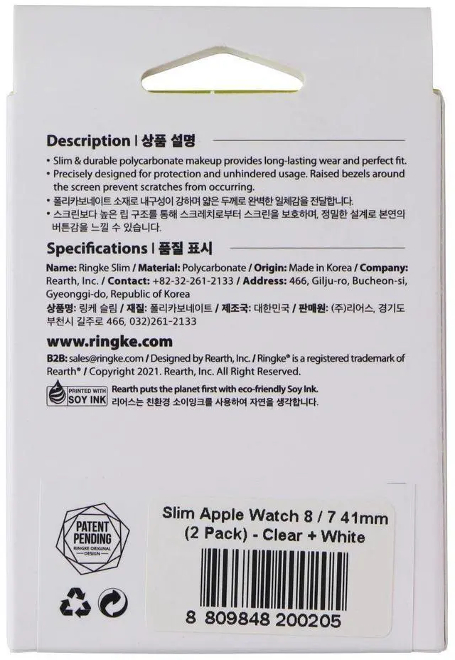 Ringke Slim Case for Apple Watch 9/8/7 (41mm). White and Clear Case 2 Pack.
