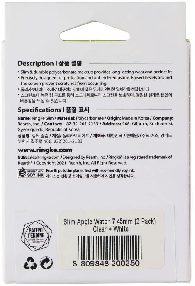 Ringke Slim Case for Apple Watch 9/8/7 (45mm). White and Clear Case 2 Pack.