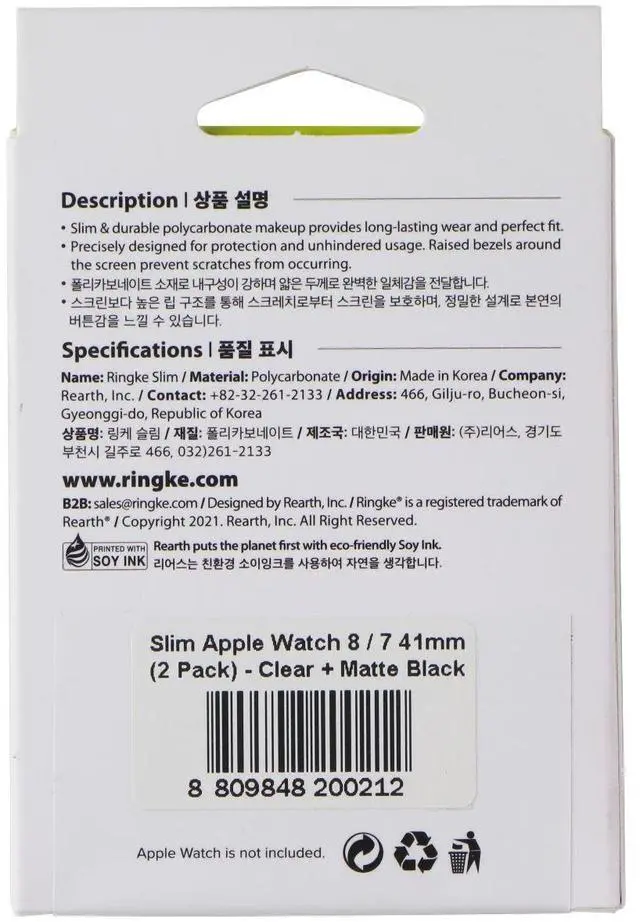 Ringke Slim Case for Apple Watch 9/8/7 (41mm). Matte Black and Clear Case 2 Pack.