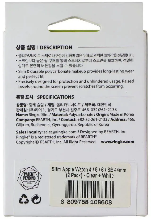 The Ringke Slim Case for Apple Watch SE/6/5/4 (44mm) Smartwatches. White & Clear (2 Pack).