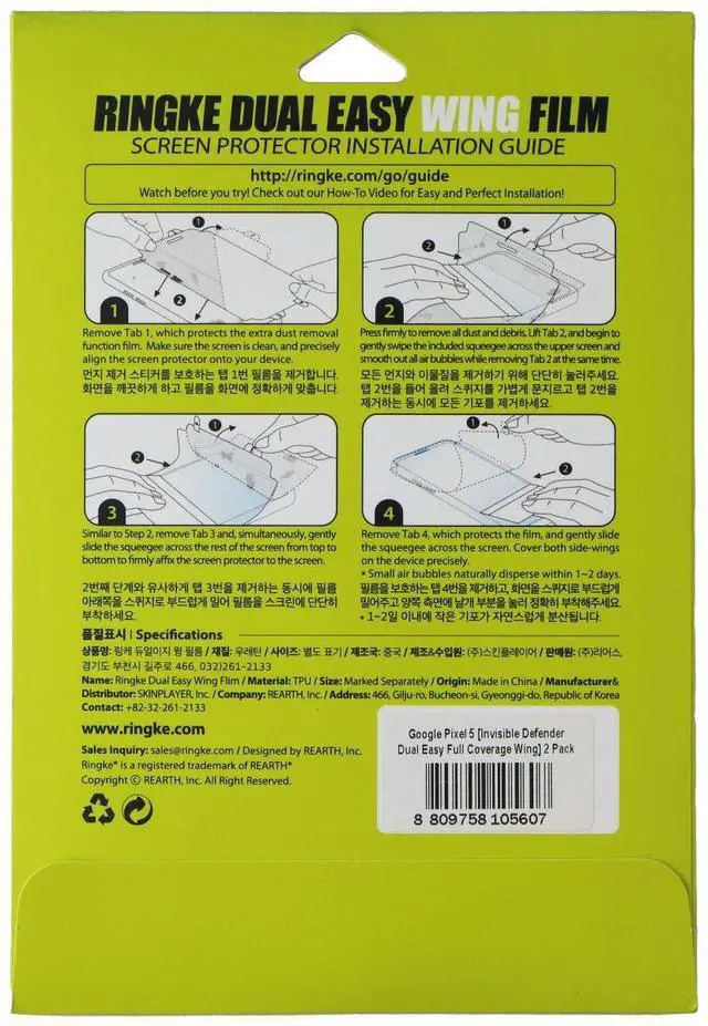 The Ringke Dual Easy Wing Screen Protector for Google Pixel 5 Smartphones. (2 Pack).