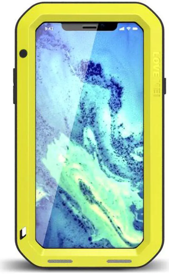Love Mei Powerful Case For iPhone Xs Premium Waterproof Shockproof Aluminum Case Cover for iPhone Xs (Yellow)