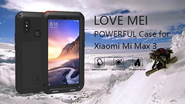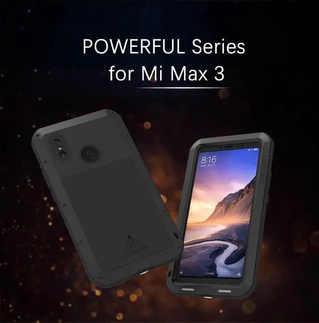 Love Mei Powerful Case For Xiaomi Mi Max 3 Premium Waterproof Shockproof Aluminum Case Cover for Xiaomi Max3 (Black)