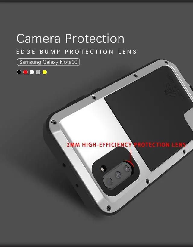 Love Mei Aluminum Metal Armor For Samsung NOTE 10 Shockproof Dirtproof Full Body Heavy Duty Case For Samsung NOTE 10 (Black) * Function: Shockproof,Dustproof,Anti Scratch. * Feature: Brand Waterproof Shockproof Aluminum Case Cover. * Material:Aluminum Metal Alloy+Silicon Gel. Note: you can use it when you live in Rainy day, snow day,but you cann't use it under water , that's means it cann't take photo / calling / video ect under the water .so please considering more before buy.thanks!!!