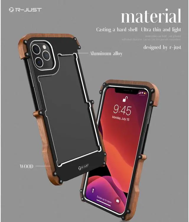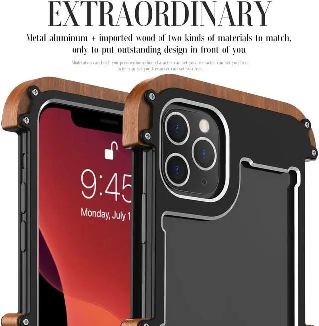 Natural Wood & Aluminum Metal Bumper Case Hard Protection Shockproof Case Cover For iphone 11 Pro [Compatible Model]: Perfectly Fits for iPhone[Material]: Made of High Quality Aluminum Alloy+Natural Wood[Color]: Black[Feature]: Luxury Metal Aluminum Alloy Frame Wood Phone Case Cover[Style]: Fashion Leisure Mobile Phone Case Cover Bag Shell[Function]: Shock-Proof | Scratch-Resistant | Anti-Skid | Dirt-Resistant
