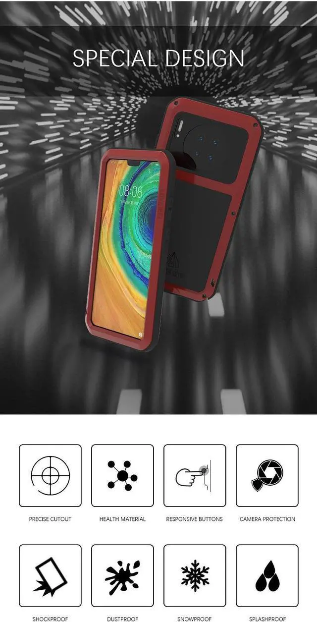 LOVE MEI Waterproof Case for HUAWEI Mate 30 Armored MetaLOVEMEI Powerful Metal Waterproof Back Cover For HUAWEI Mate 30 2019 Case Aluminum ShockProof Defender Phone Case (Red)
