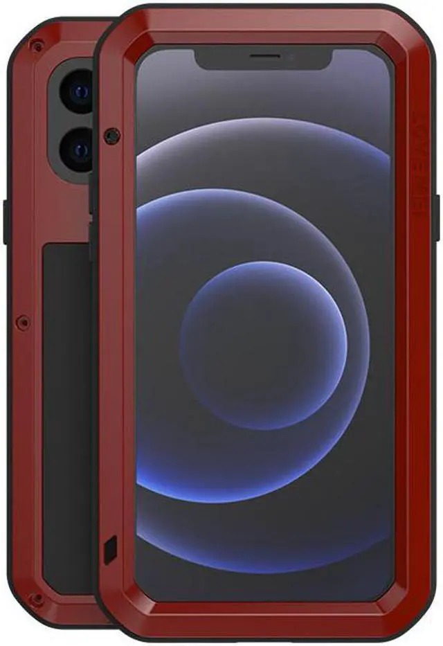 LOVE MEI Powerful Metal Waterproof Case For iPhone12 mini Cover Full Body Protection ShockProof Phone Case (Red)