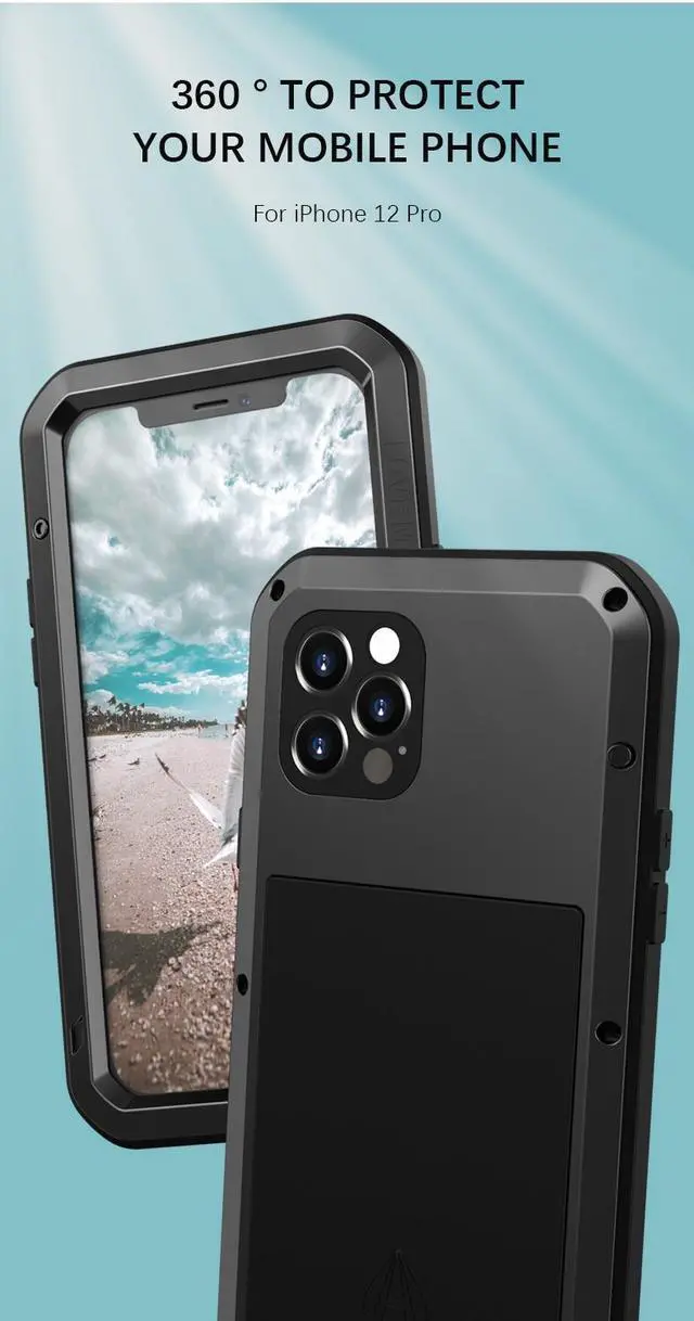 LOVE MEI Powerful Metal Waterproof Case For iPhone12 Pro Cover Full Body Protection ShockProof Phone Case (Yellow)