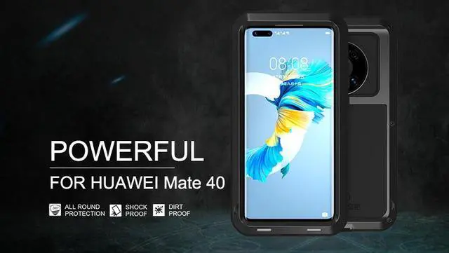 LOVE MEI Shock Dirt Proof Water Resistant Metal Armor Cover Phone Case for HUAWEI Mate 40 - Black 1.