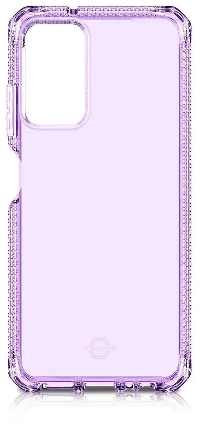 Protect your Galaxy A03s with the Itskins Spectrum Clear Case?slim, shockproof, and stylish in light purple; order now to upgrade your phone's defense.