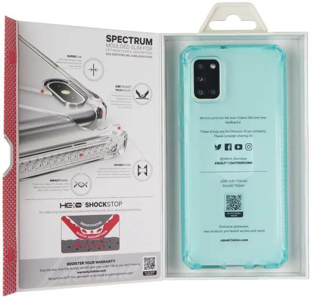 Features:Impacthane custom polymer fabricated with HEXOTEK 2.0 air pocket technologySuper performant with military-grade drop protectionSpectrumclear powerfully safeguards your phone with intelligent Drop Safe ProtectionSlim and ProtectiveCompatible Model: For Samsung Galaxy A31