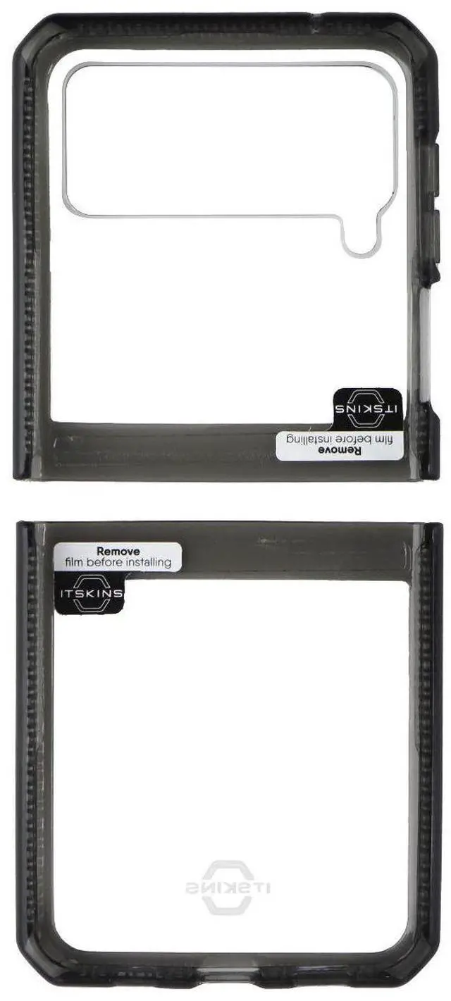 The ITSKINS Hybrid Clear Series Case for Samsung Galaxy Z Flip3 Smartphones. Smoke/Clear Version. Features:Shock-absorbing hybrid constructionTransparent back with smoke edgesSlim, lightweight designPrecision cutouts for ports and buttons