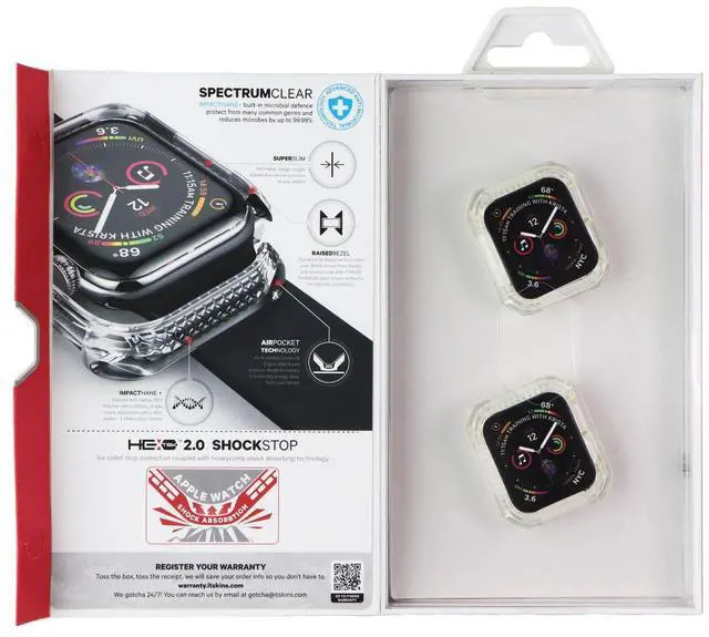 The ITSKINS Spectrum Case for Apple Watch Series 4 (40mm) Smartwatches. Clear (2 Pack). Features:Raised edges protect screen and cameraFlexible yet durable designResponsive buttonsAir pocket corners