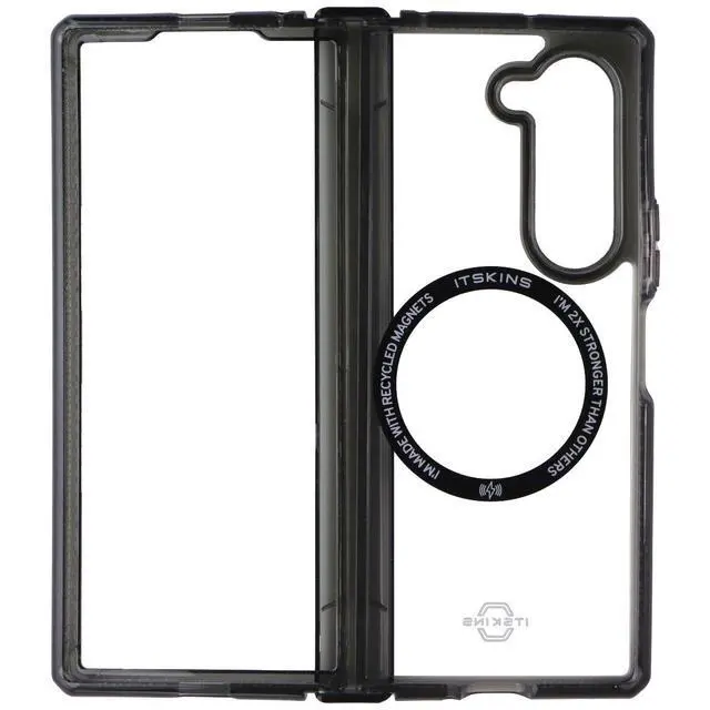 The ITSKINS Hybrid_R Clear // Hinge Series Case for Samsung Galaxy Z Fold6 Smartphones. Smoke Version. Features:2x Stronger MagnetsA.I. Enhanced Drop ProtectionCamera, Screen and Hinge ProtectionOversized Raised Edges130 Drop Tests