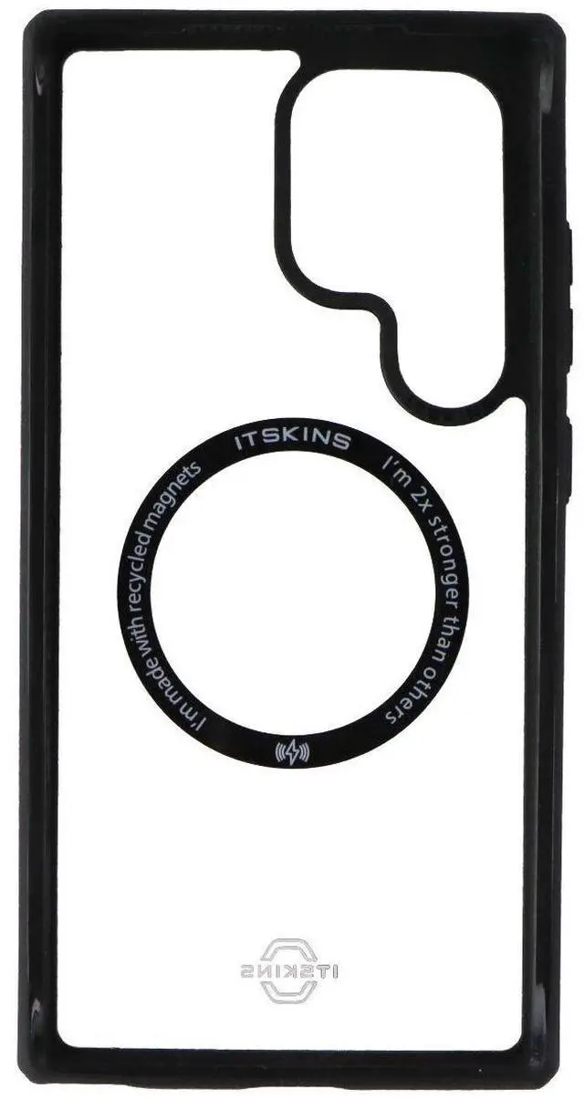 The ITSKINS Hybrid_R // Solid Case for Samsung Galaxy S24 Ultra Smartphones. Black/Transparent Version.