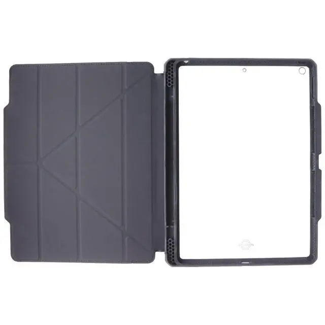 The ITSKINS Hybrid_R // Solid Folio for Apple iPad 10.2-in (9th / 8th / 7th Gen) Tablets. Black and Clear version.