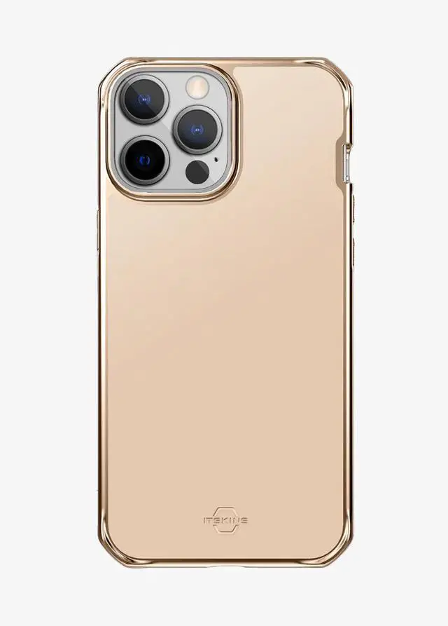 Protect your iPhone 12 Pro Max with the Itskins Hybrid Glass in a refined gold finish ? a slim, durable case that blends a glass back with shock-absorbing edges and full MagSafe compatibility for everyday convenience and style.