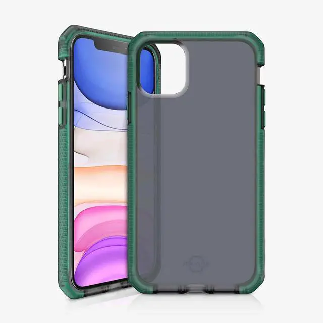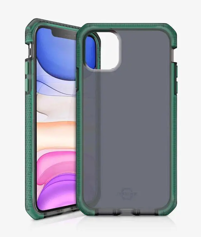 Protect your iPhone 11 with the Itskins Supreme Frost Protective Phone Case ? a slim hybrid cover that blends Tiffany Green accents with matte black for a modern, military-inspired look while delivering heavy-duty defense without bulk.