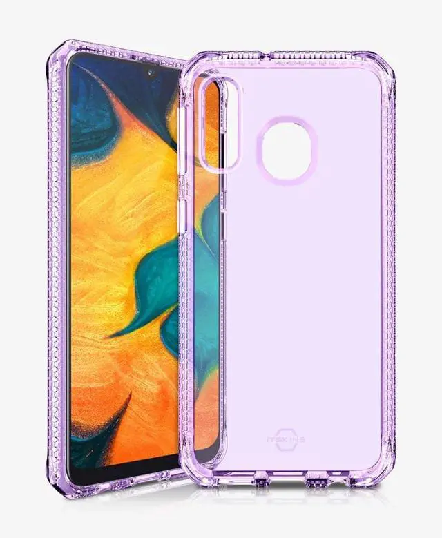 Protect your Samsung Galaxy A20 or A30 with the Itskins Spectrum Clear Protective Phone Case in light purple?an elegant, slim profile that showcases your phone while delivering rugged everyday protection.