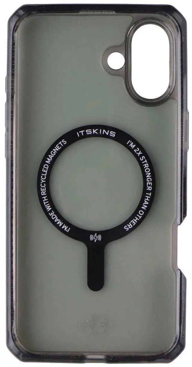 The ITSKINS Hybrid_R // Vapor Case for MagSafe for Apple iPhone 16 Plus. Smoke version.