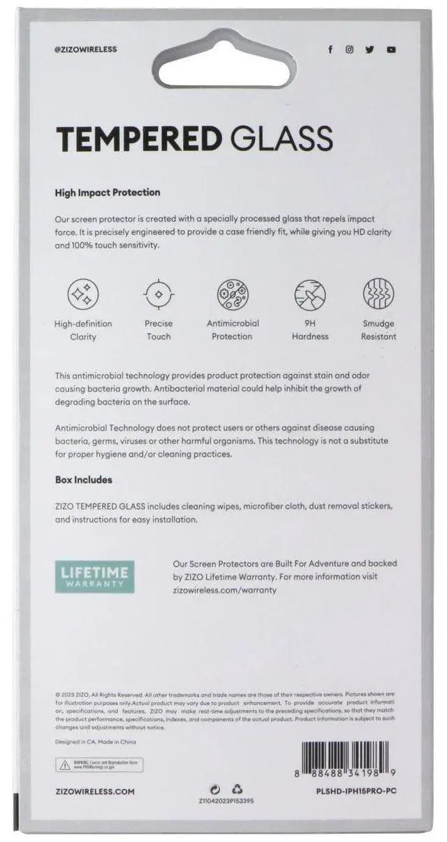 ZIZO Tempered Glass Screen Protector for Apple iPhone 15 Pro - Privacy