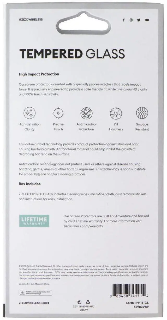 The ZIZO Tempered Glass Screen Protector for Apple iPhone 15/15 Pro Smartphones. Clear Version. Features:High Definition ClarityPrecise Touch9H HardnessSmudge Resistant