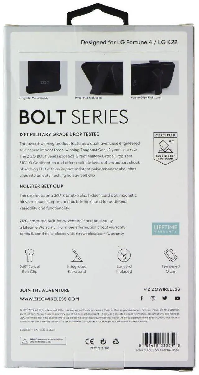 Zizo Bolt Series Case and Holster for LG Fortune 4 / LG K22. Red/Black version.