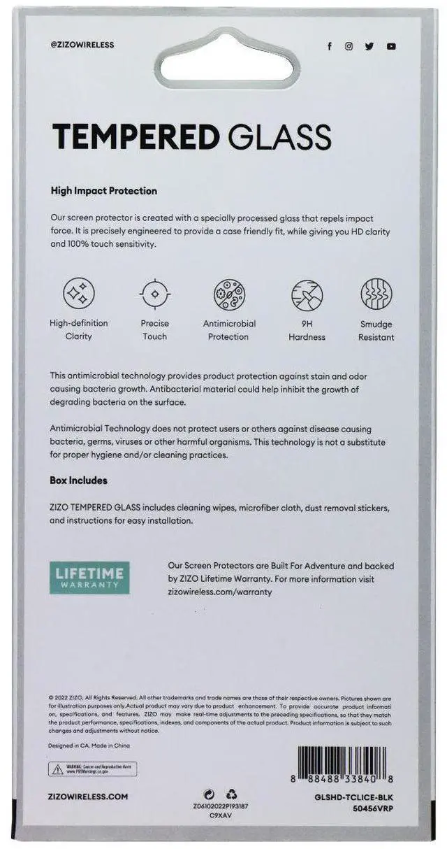 ZIZO Tempered Glass Screen Protector for TCL ION Z Smartphones. Clear/Black version.