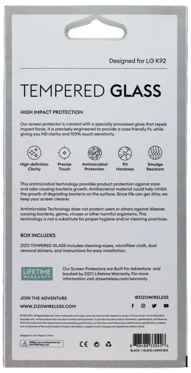 The ZIZO Tempered Glass Screen Protector for LG K92. Clear with Black Border.