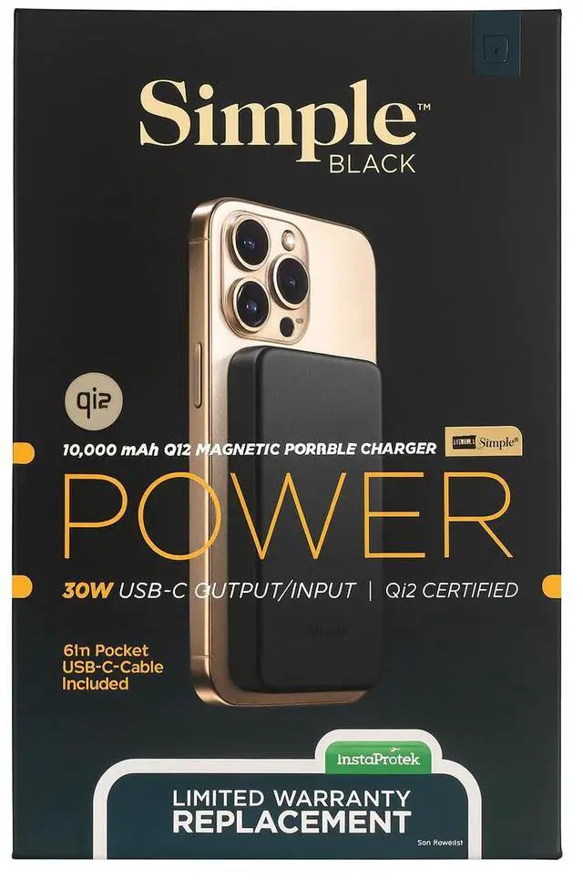 Discover the Simple Black 10000mAh Qi2 Magnetic Power Bank, a reliable and efficient charging solution designed for on-the-go power needs. This power bank features a 10000mAh lithium-ion battery capacity, delivering up to 30W of fast charging via USB-C output for quick and efficient device rejuvenation. It supports Qi2 wireless charging technology with magnetic alignment, ensuring seamless compatibility with MagSafe-enabled iPhones and other Qi-certified devices for a secure and stable charging experience.