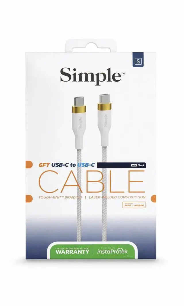 Compact and reliable, the Simple 6 Ft - USB-C Cable with USB-C Connector delivers seamless connectivity and dependable charging for modern devices. Designed for everyday use, it balances length and portability so you can charge, sync, and carry with confidence.