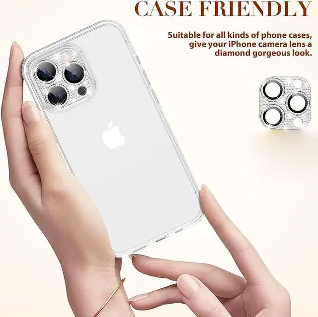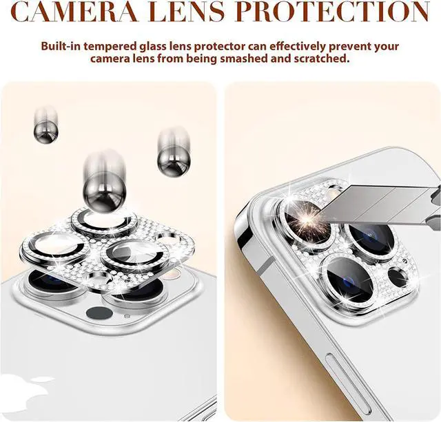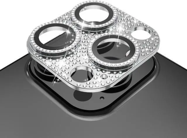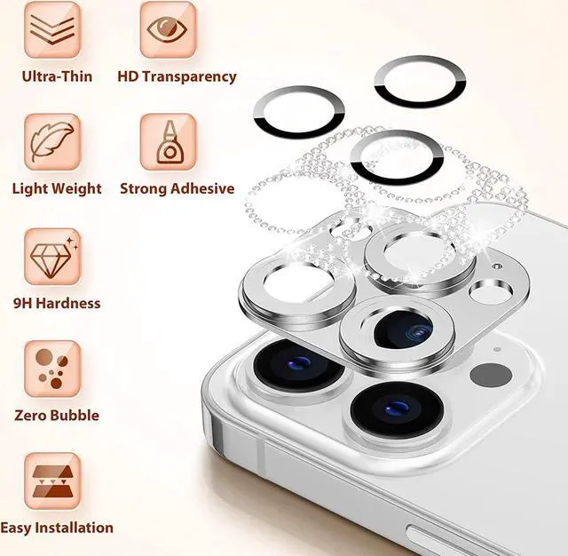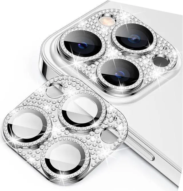 Features: Compatible with Apple iPhone 12 Pro. Shield your phone's rear camera lens with a full-coverage tempered glass protector. Take clean pictures and videos through super-clear glass with zero flash interference. Zinc alloy frame inlaid with reflective sparkly swarovski-grade rhinestones. Show off your style and individuality with rhinestone touch. The picture-perfect defense your state-of-the-art camera needs. Designed to fit flush with your lenses. Scratch proof surface with impact and shatter protection. The premium oleophobic coating keeps your lenses crystal-clean and free from oil, dirt, and fingerprints. Case-friendly design. Easy adhesive application.