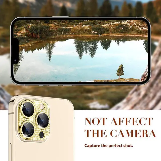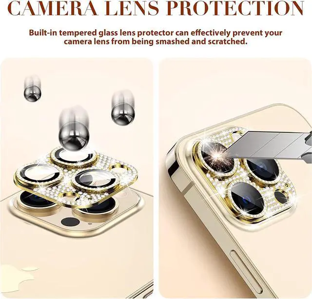 Features: Compatible with Apple iPhone 12 Pro. Shield your phone's rear camera lens with a full-coverage tempered glass protector. Take clean pictures and videos through super-clear glass with zero flash interference. Zinc alloy frame inlaid with reflective sparkly swarovski-grade rhinestones. Show off your style and individuality with rhinestone touch. The picture-perfect defense your state-of-the-art camera needs. Designed to fit flush with your lenses. Scratch proof surface with impact and shatter protection. The premium oleophobic coating keeps your lenses crystal-clean and free from oil, dirt, and fingerprints. Case-friendly design. Easy adhesive application.