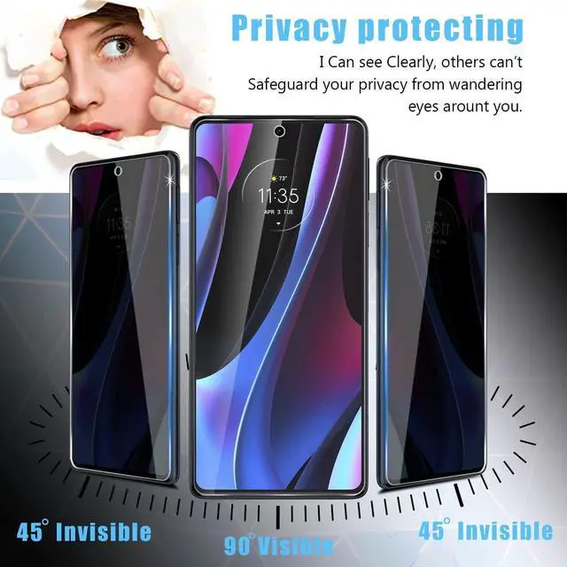 Protect your sensitive information from prying eyes and your Motorola Moto G 5G 2023 screen from chips, cracks, and breaks. Engineered to offer five times the strength of an unprotected screen, Privacy Tempered Glass Screen Protector obscures the view of your phone display from the side while allowing a crystal-clear view from straight on. Revolutionary oil-diffusion technology that makes fingerprints virtually invisible, and an anti-microbial treatment that protects the screen protector.