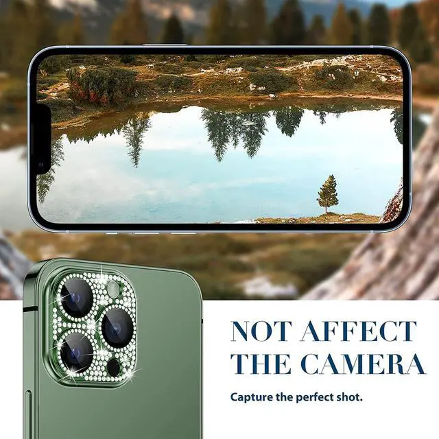 Features: Compatible with Apple iPhone 13 Pro / iPhone 13 Pro Max. Shield your phone's rear camera lens with a full-coverage tempered glass protector. Take clean pictures and videos through super-clear glass with zero flash interference. Zinc alloy frame inlaid with reflective sparkly swarovski-grade rhinestones. Show off your style and individuality with rhinestone touch. The picture-perfect defense your state-of-the-art camera needs. Designed to fit flush with your lenses. Scratch proof surface with impact and shatter protection. The premium oleophobic coating keeps your lenses crystal-clean and free from oil, dirt, and fingerprints. Case-friendly design. Easy adhesive application.