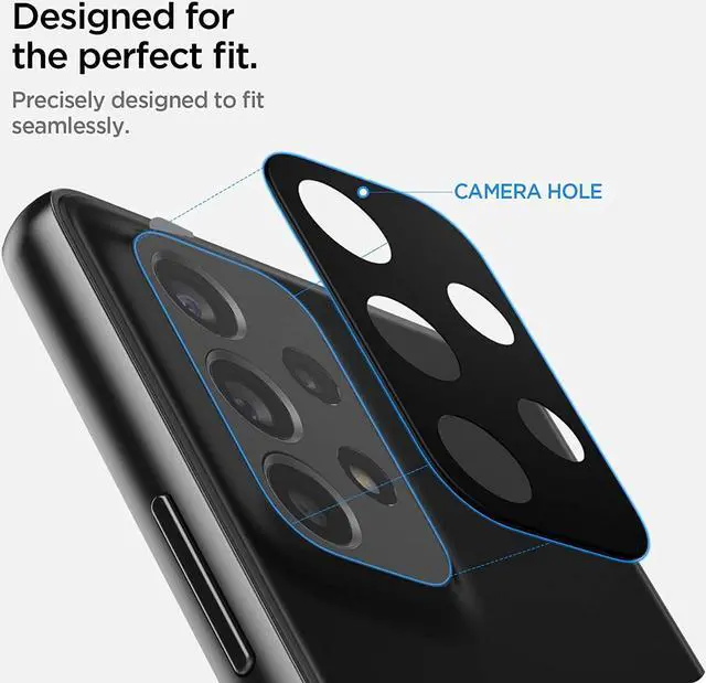 Features: Shield your phone's rear camera lens with a full-coverage glass protector. 5-Layer coating enhances efficiency and durability without adding extra bulk. Easy-to-install via clear adhesive for maximum transparency. Take clean pictures and videos through super-clear glass with zero flash interference. Scratch proof surface. Superior lens protection. Anti-fingerprint coating. Case-friendly design. Compatible with Samsung Galaxy A53 5G.