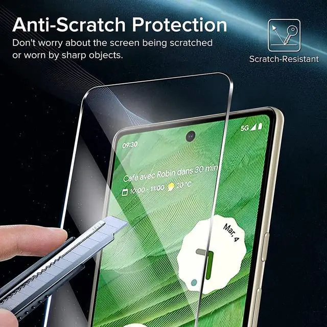 Features: Compatible with Google Pixel 7a. Engineered to offer five times the strength of an unprotected screen. Advanced Impact Protection - Protect your smartphone with slim, high-quality Japanese tempered glass. Slim Design - The super-thin 0.33 mm glass preserves screen sensitivity to respond accurately to your touch. Feels Like Your Natural Screen - Your finger glides smoothly over the screen protector, just like it does over your device. Intelligent glass composition reacts like the natural screen. Advanced Defense Against Scratches - Rigorous testing proves a hardness rating of 9H - the highest level of scratch protection available. Anti-Fingerprint Coating - Engineered with fingerprint and oil resistance, you’ ll have a screen that’ s feeling clean and looking clear. Crystal-clear so you can see photos and videos as they’ re meant to be viewed. Self-adhesive application. Case friendly fit.
