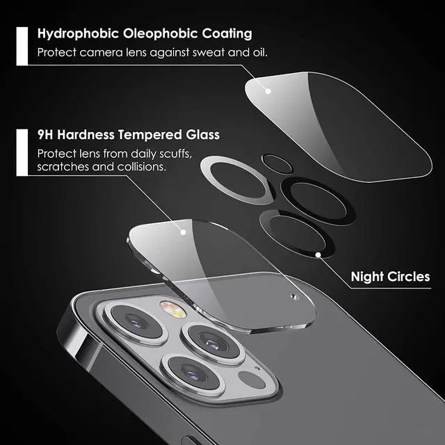 Crafted with HD tempered glass, the Lens Protector will shield your Apple iPhone 14 Pro / iPhone 14 Pro Max rear camera lens from getting scratched or cracked. HD tempered glass gives your rear camera lens the ultimate protection.