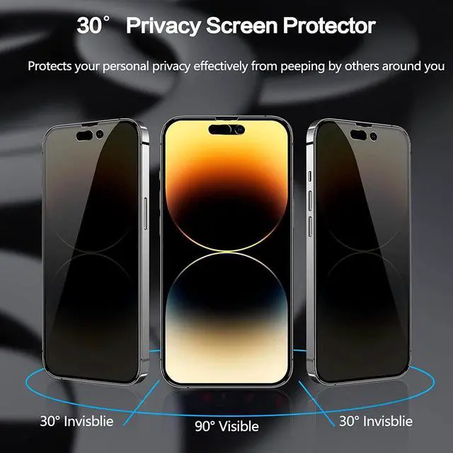 Package Includes: Privacy Tempered Glass Screen Protector. Tempered Glass Lens Protector.