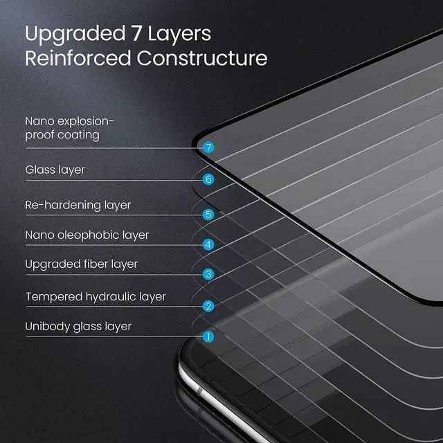 Coating: Oleophobic (Anti-fingerprint), Anti-Shatter, and Adhesive Silicone.