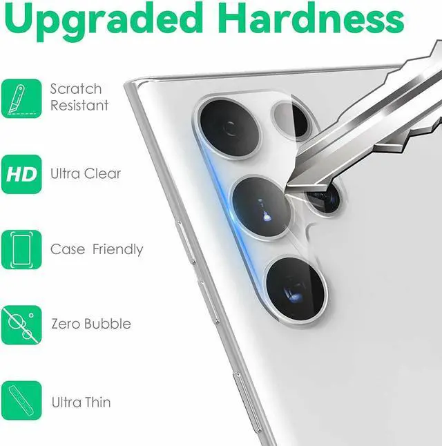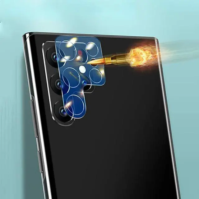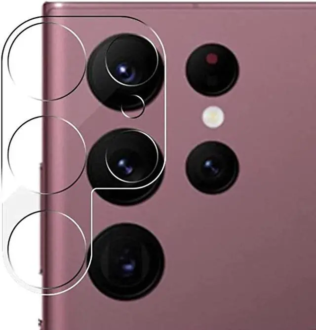 Features: Shield your phone's rear camera lens with a full-coverage glass protector. 5-Layer coating enhances efficiency and durability without adding extra bulk. Easy-to-install via clear adhesive for maximum transparency. Take clean pictures and videos through super-clear glass with zero flash interference. Scratch proof surface. Superior lens protection. Anti-fingerprint coating. Case-friendly design. Compatible with Samsung Galaxy S22 Ultra 5G.
