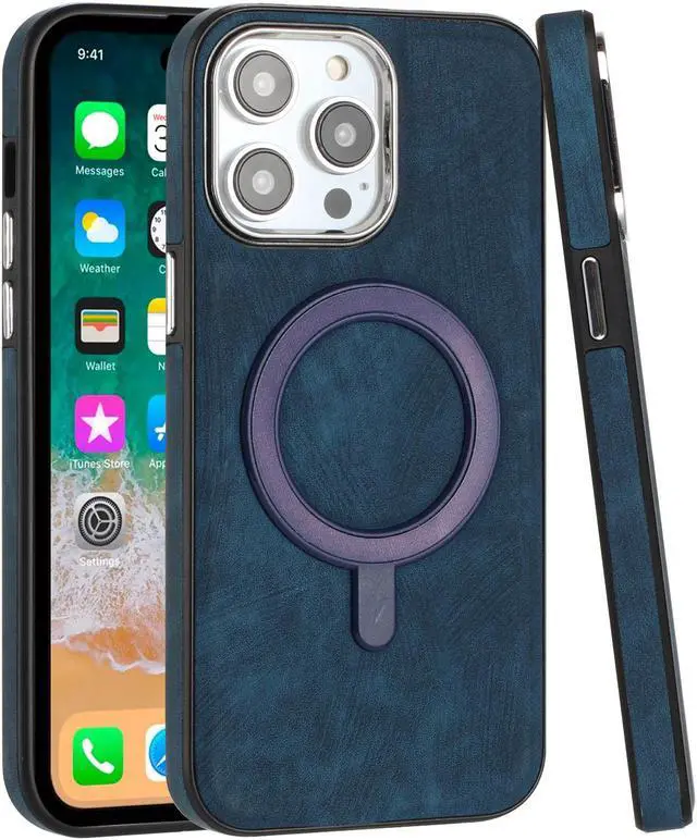 Features: Compatible with Apple iPhone 14 Pro. Designed to interact with Apple’ s MagSafe ecosystem. Compatible with Apple MagSafe chargers and accessories so you can power up without removing the case. Thanks to the case's design, your phone won't have added bulk all the way around, helping to keep your phone as slim and light as it was designed to be. The stylish leather finish not only feels great in hand, but it also provides excellent grip - reducing the risk of accidental drops and bumps. Premium TPU bumper material for durable flexibility. Front bumpers raised slightly above your screen act to protect your screen when placed face down or dropped. Raised camera cut-out with integrated camera lens bumper protector protects the lens from scratches when placing your phone on flat surface. Micro fiber inner lining. Embossed buttons for an easy, conspicuous press. Precisely cutouts to preserve full use of volume buttons, charger, camera, microphone, and all other ports.