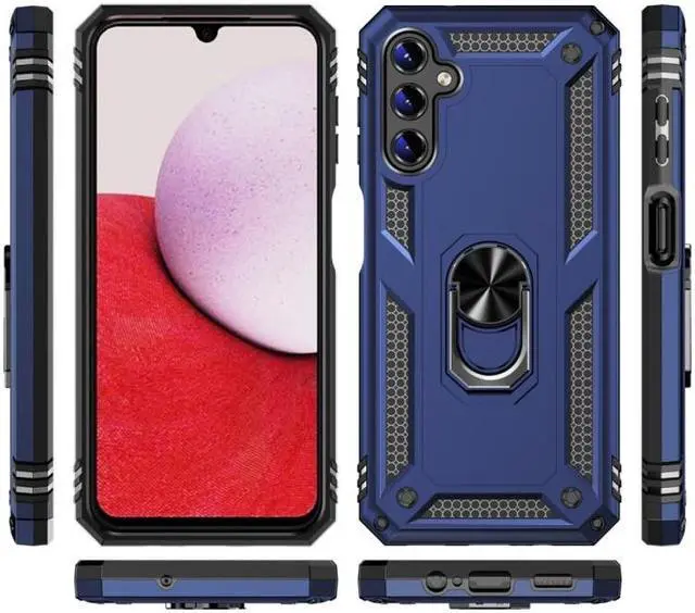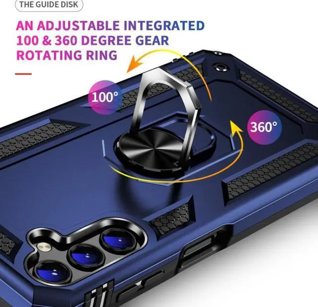 Features: Compatible with Samsung Galaxy A54 5G. Military Standard Shock Test MIL-STD 810G- 516.6 Protection. The case endured 26 drops (at 48in) on all 6 faces, 12 edges and 8 corners of the device and sustained zero damage to the appearance and internal hardware of the phone itself. Made from a special strong and lightweight durable material, providing you with long lasting protection for your smartphone without making it cumbersome. Ring holder for extra drop protection - in more ways than one. The built-it ring features a 180 & 360 degree rotating design to ensure a comfortable grip at any angle. Flip the ring out and it doubles as a kickstand to take your binge-watching experience to the next level. Unique mix material hybrid design.