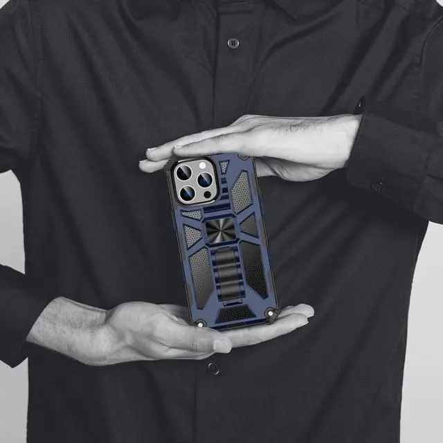 Equip your Apple iPhone 14 Pro with a 360 degree protection with this new Tough Ultra Rugged Hybrid Case. Enjoy a built-in kickstand designed for media viewing, while also compliments the case's futuristic and rugged military design.