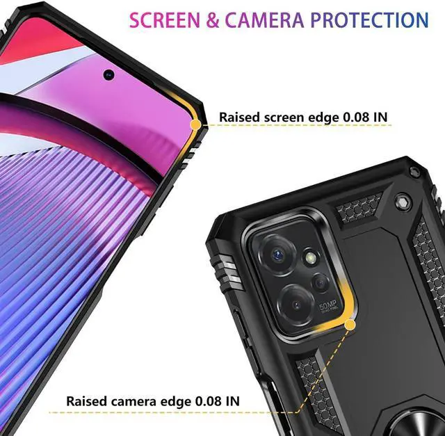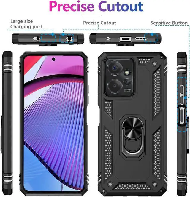 Features: Compatible with Motorola Moto G Power 5G 2023. Military Standard Shock Test MIL-STD 810G- 516.6 Protection. The case endured 26 drops (at 48in) on all 6 faces, 12 edges and 8 corners of the device and sustained zero damage to the appearance and internal hardware of the phone itself. Made from a special strong and lightweight durable material, providing you with long lasting protection for your smartphone without making it cumbersome. Ring holder for extra drop protection - in more ways than one. The built-it ring features a 180 & 360 degree rotating design to ensure a comfortable grip at any angle. Flip the ring out and it doubles as a kickstand to take your binge-watching experience to the next level. Unique mix material hybrid design.