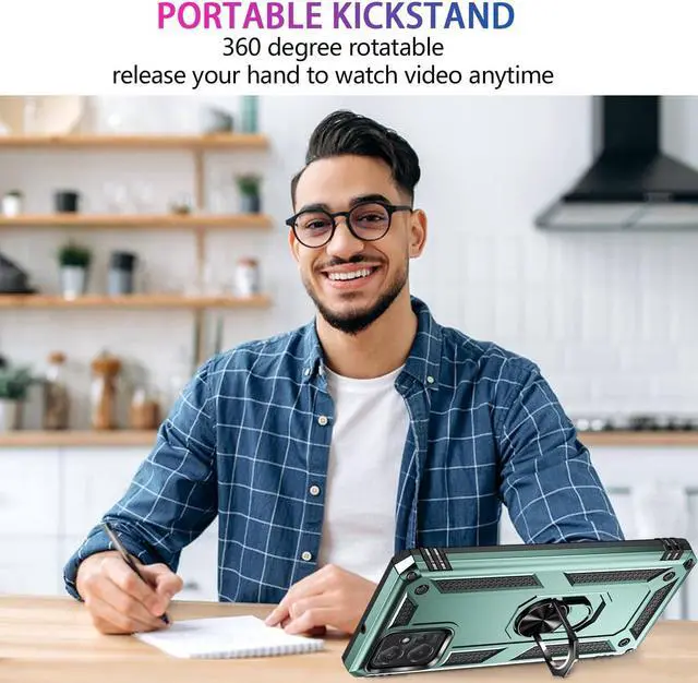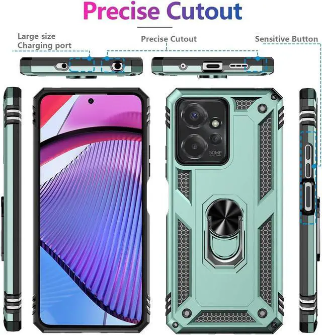 Features: Compatible with Motorola Moto G Power 5G 2023. Military Standard Shock Test MIL-STD 810G- 516.6 Protection. The case endured 26 drops (at 48in) on all 6 faces, 12 edges and 8 corners of the device and sustained zero damage to the appearance and internal hardware of the phone itself. Made from a special strong and lightweight durable material, providing you with long lasting protection for your smartphone without making it cumbersome. Ring holder for extra drop protection - in more ways than one. The built-it ring features a 180 & 360 degree rotating design to ensure a comfortable grip at any angle. Flip the ring out and it doubles as a kickstand to take your binge-watching experience to the next level. Unique mix material hybrid design.