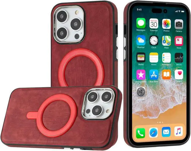 Features: Compatible with Apple iPhone 14. Designed to interact with Apple’ s MagSafe ecosystem. Compatible with Apple MagSafe chargers and accessories so you can power up without removing the case. Thanks to the case's design, your phone won't have added bulk all the way around, helping to keep your phone as slim and light as it was designed to be. The stylish leather finish not only feels great in hand, but it also provides excellent grip - reducing the risk of accidental drops and bumps. Premium TPU bumper material for durable flexibility. Front bumpers raised slightly above your screen act to protect your screen when placed face down or dropped. Raised camera cut-out with integrated camera lens bumper protector protects the lens from scratches when placing your phone on flat surface. Micro fiber inner lining. Embossed buttons for an easy, conspicuous press. Precisely cutouts to preserve full use of volume buttons, charger, camera, microphone, and all other ports.