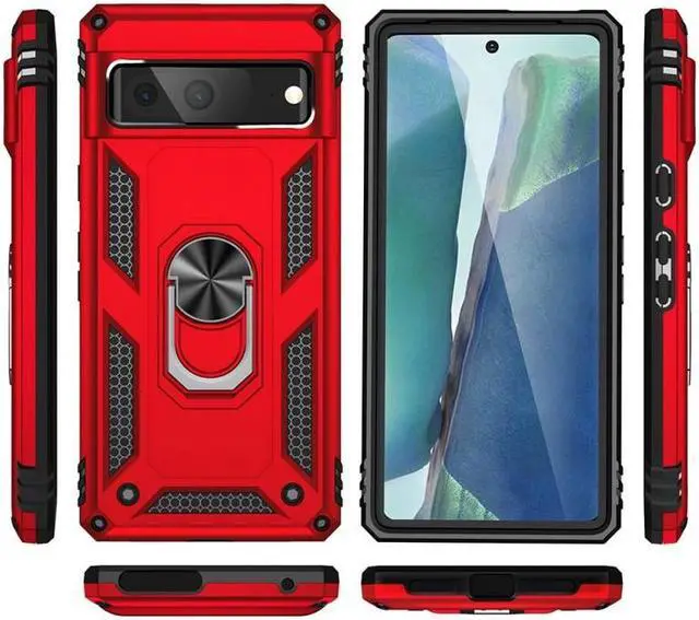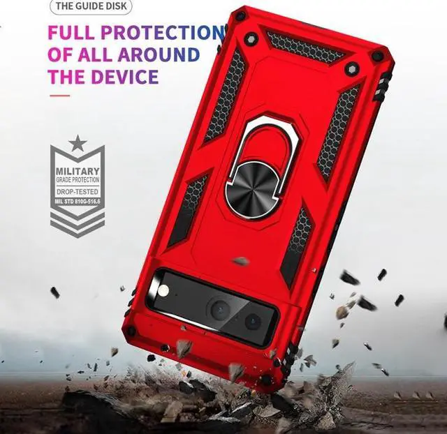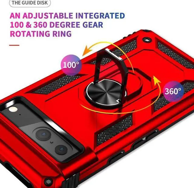 Features: Compatible with Google Pixel 7a. Military Standard Shock Test MIL-STD 810G- 516.6 Protection. The case endured 26 drops (at 48in) on all 6 faces, 12 edges and 8 corners of the device and sustained zero damage to the appearance and internal hardware of the phone itself. Made from a special strong and lightweight durable material, providing you with long lasting protection for your smartphone without making it cumbersome. Ring holder for extra drop protection - in more ways than one. The built-it ring features a 180 & 360 degree rotating design to ensure a comfortable grip at any angle. Flip the ring out and it doubles as a kickstand to take your binge-watching experience to the next level. Unique mix material hybrid design.